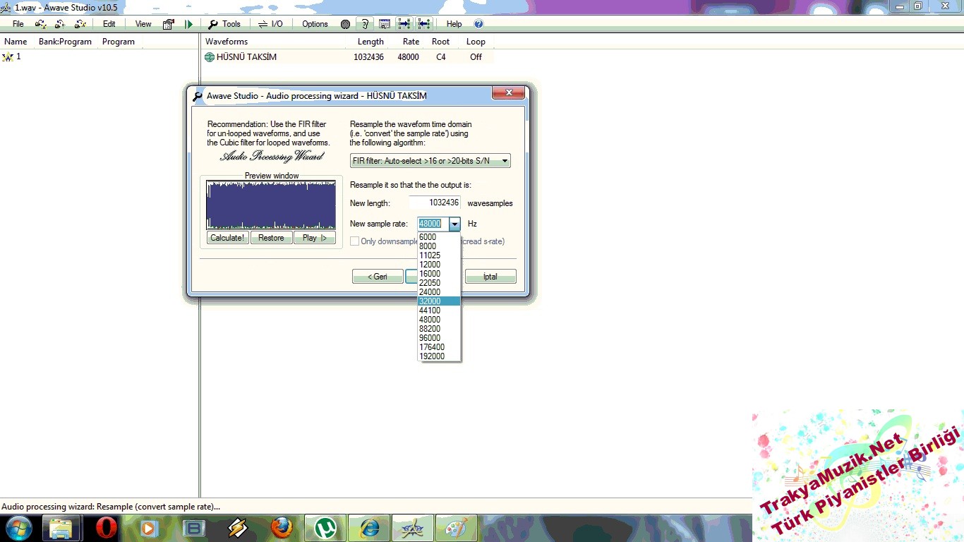 Wav dosyasını awave in icine sürükle bırak sonra resimlerdeki 3 aşamayı uygula. Son olarak wav a sag tıkla ve farklı bir isimle kaydet. Boyutu düşmüş olacak.